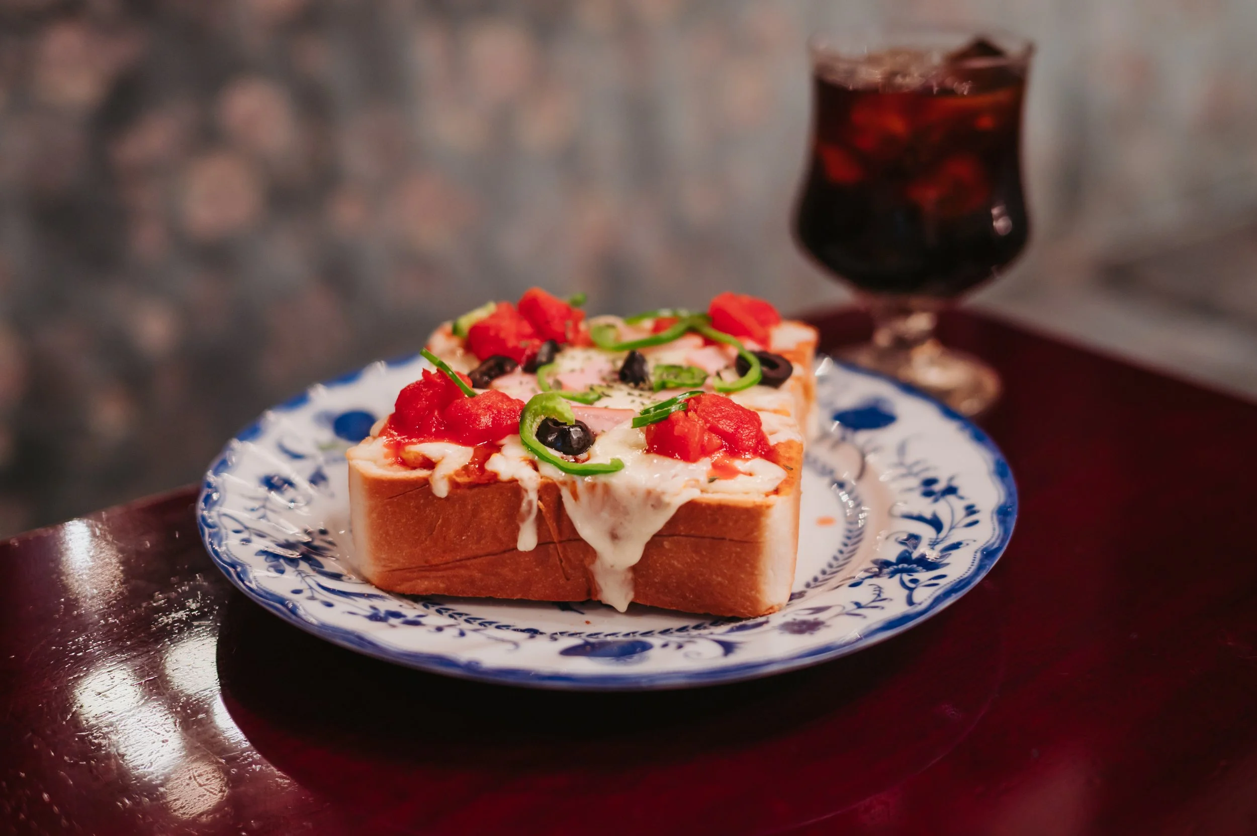 You’ll find that a kissaten’s menu is usually heavily influenced by the West, or more accurately, an imagined version of the West as filtered through Japanese culture. Don’t be surprised to see the likes of spaghetti Napolitan, caramel custard puddings and elaborate fruit parfaits. My go-to order, simply because it resembles something I would have made if I were alone in the kitchen as a teenager, is the iconic kissaten pizza toast. Imagine a big hunk of thick, soft white bread, lightly toasted around the edges, with tomato sauce, pepperoni, cheese and bell peppers on top. It has no reason to pair beautifully with black coffee, but somehow it does.
